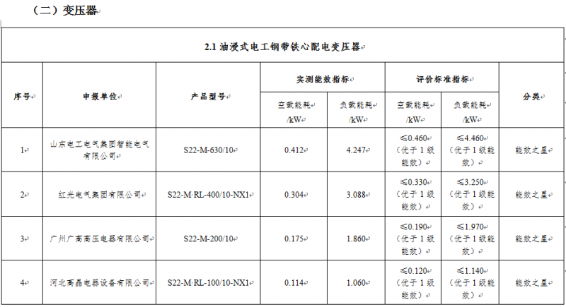 公司三种变压器产品乐成入选 《国家工业节能手艺装备推荐目录(2021)》和《“能效之星”装备产品目录(2021)》