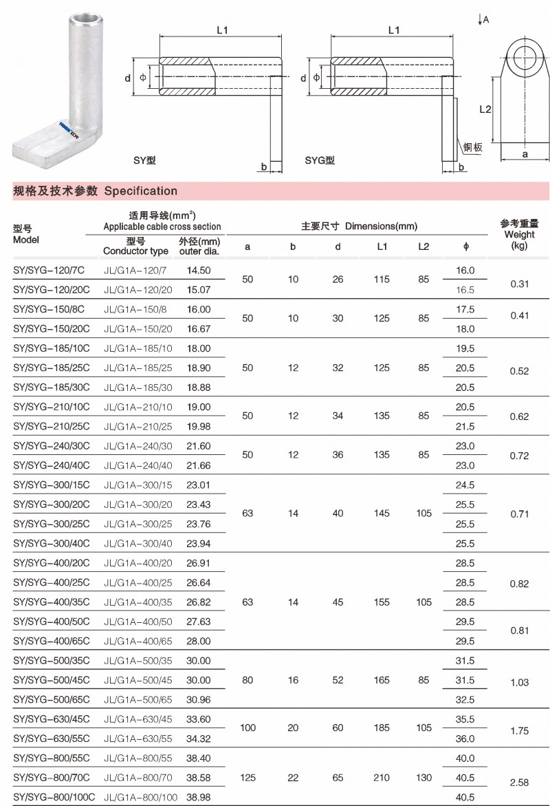 SY压缩型铝装备线夹、SYG铜铝钎焊装备线夹