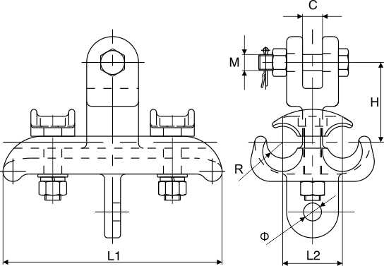 线夹本体和压板为可锻铸铁件或高强度铝合金,,,,,,缄口销为不锈钢件,,,,,,其余为热镀锌钢制件。。。。。