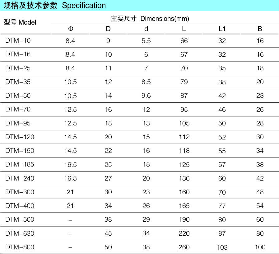 注:原型号DT,,,,按GB/T 14315标准更改为DTM