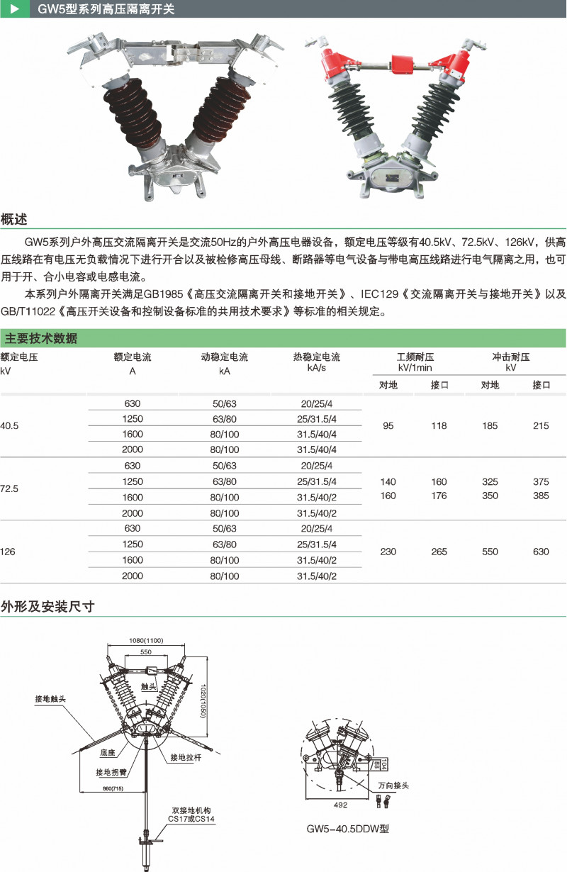 GW5型系列高压隔脱离关